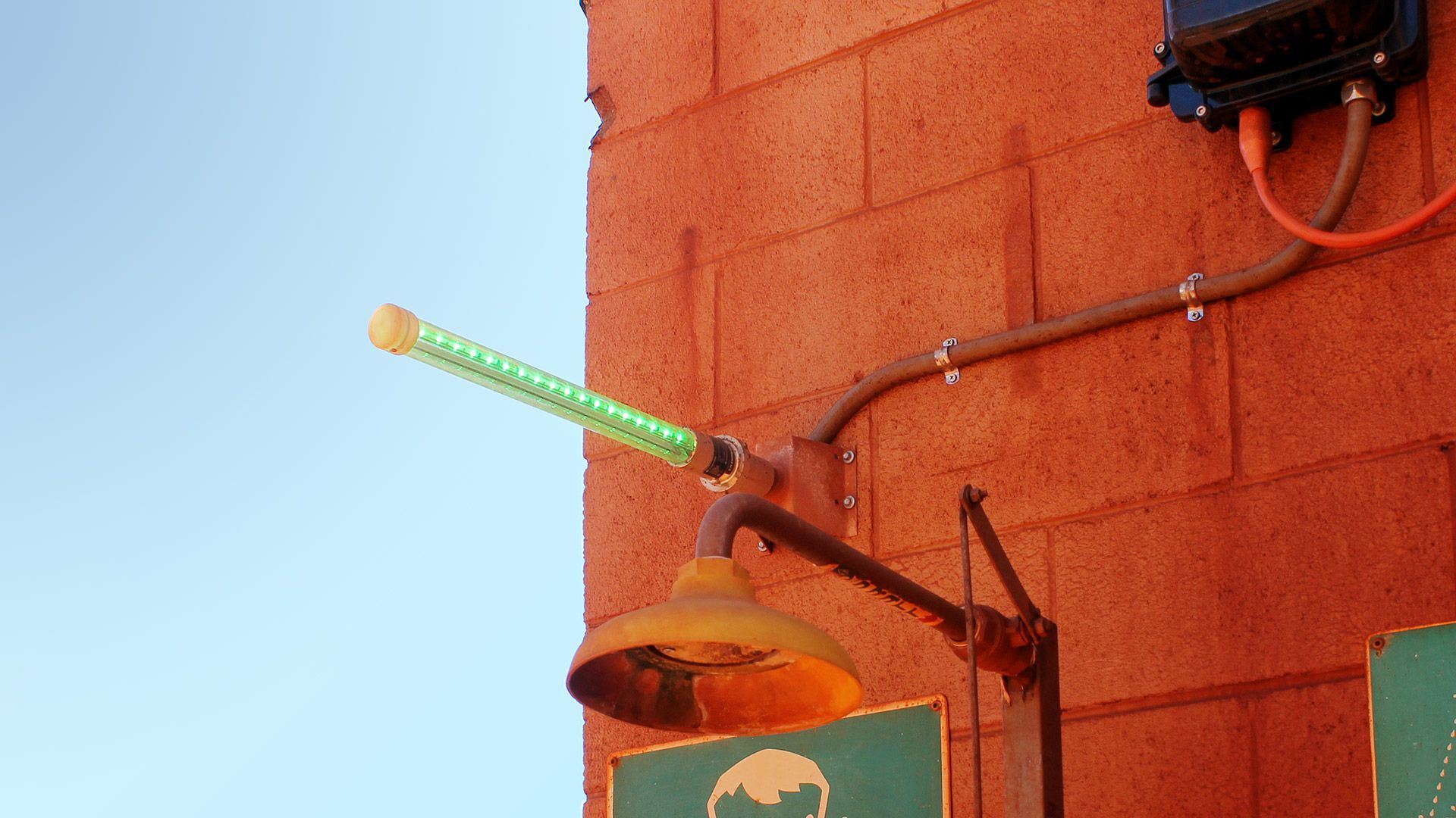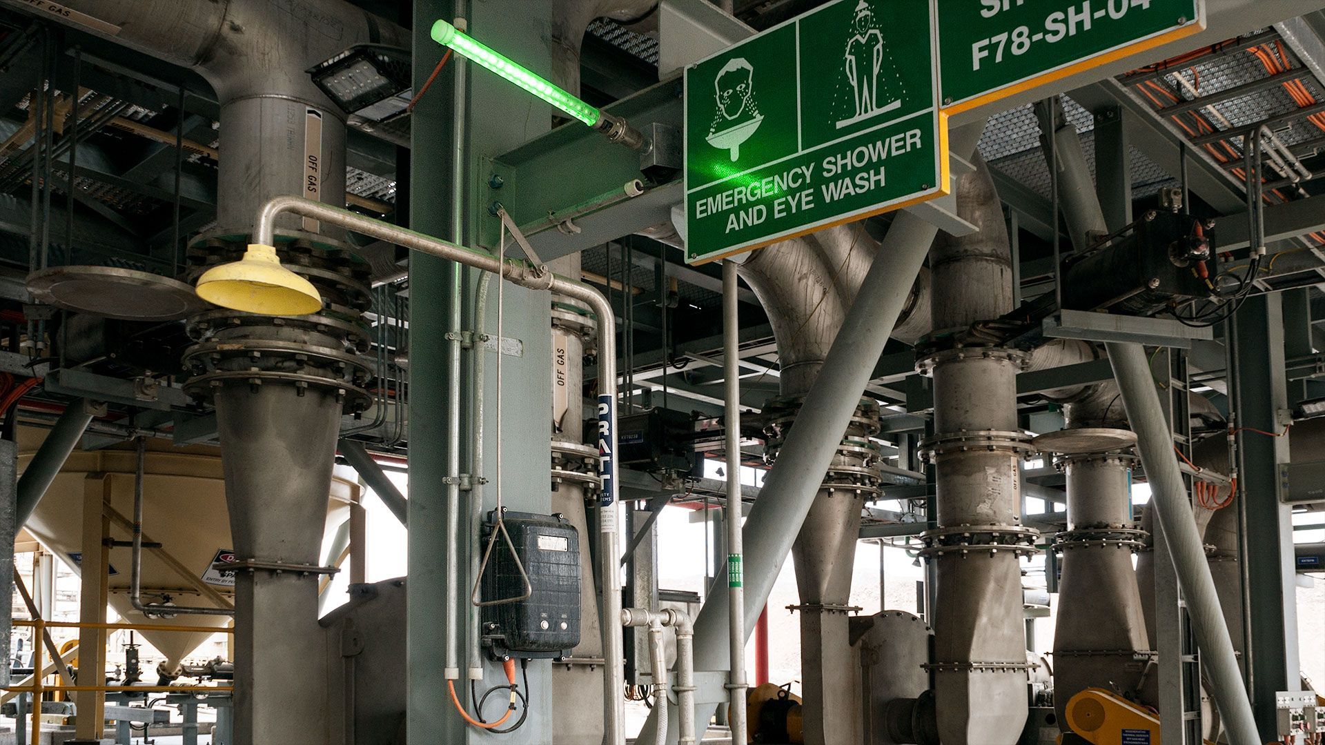 Ultra bright, green safety indicator for eye wash stations